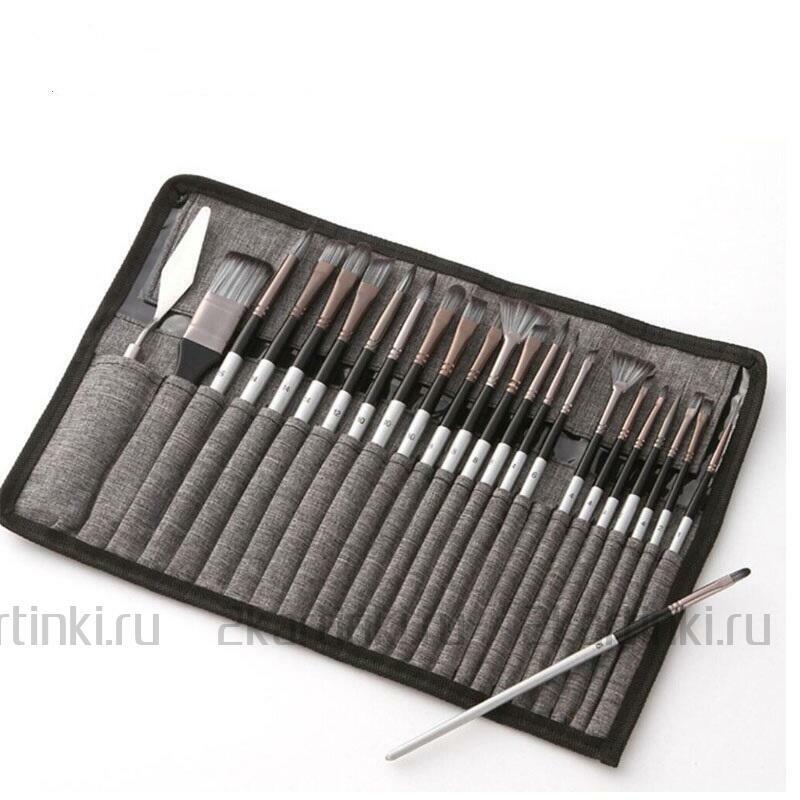 Оптом «Коробка 50 шт.: Набор кистей для рисования в чехле, премиум набор (23 нейлоновых кисти, 1 мастихин)» размером см. купить по выгодной цене 803 ₽ с доставкой по Москве и всей России.